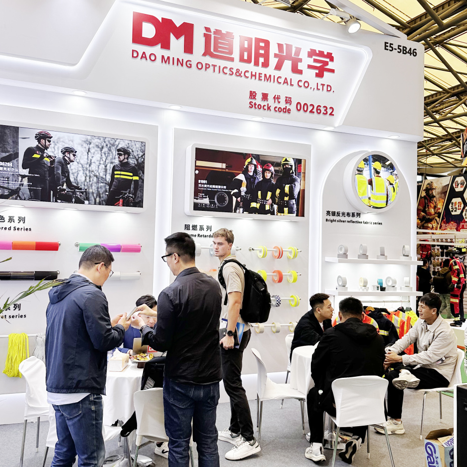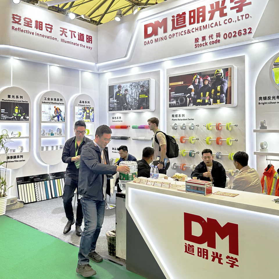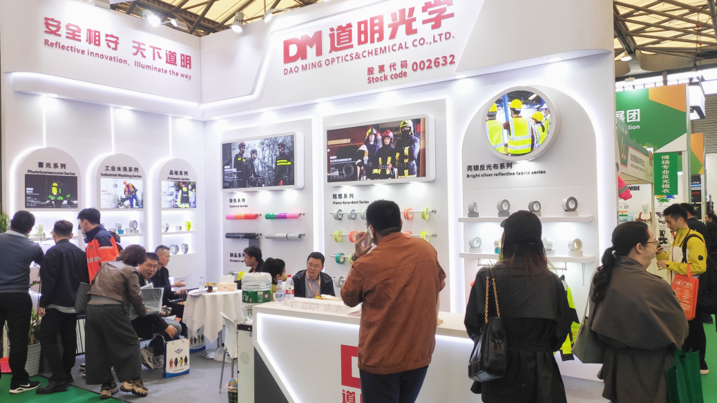 4月7-9日,第110届中国国际劳动保护用品交易会在上海新国际博览中心成功举办。道明光学携工业水洗、阻燃、亮银、晶格、蓄光、海事膜、彩色反光布、制品八大系列个人安全防护样品亮相展会,全面展现公司在反光材料与职业安全防护领域的综合实力。