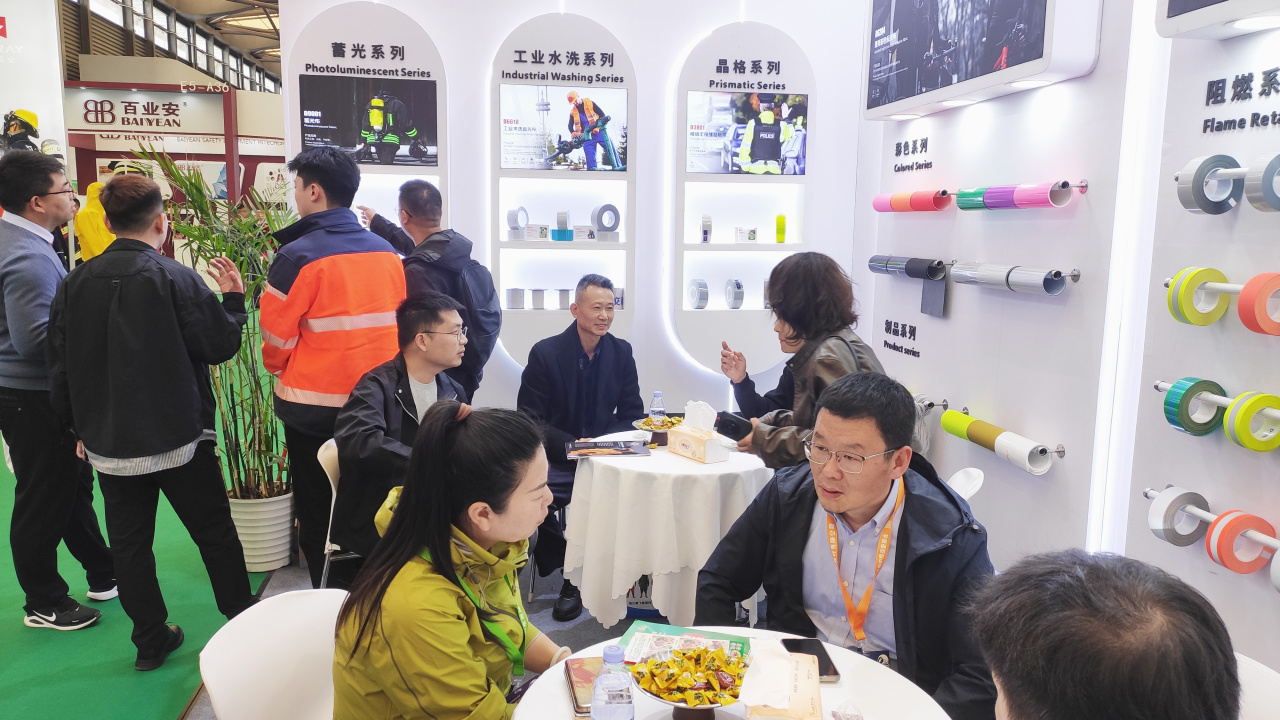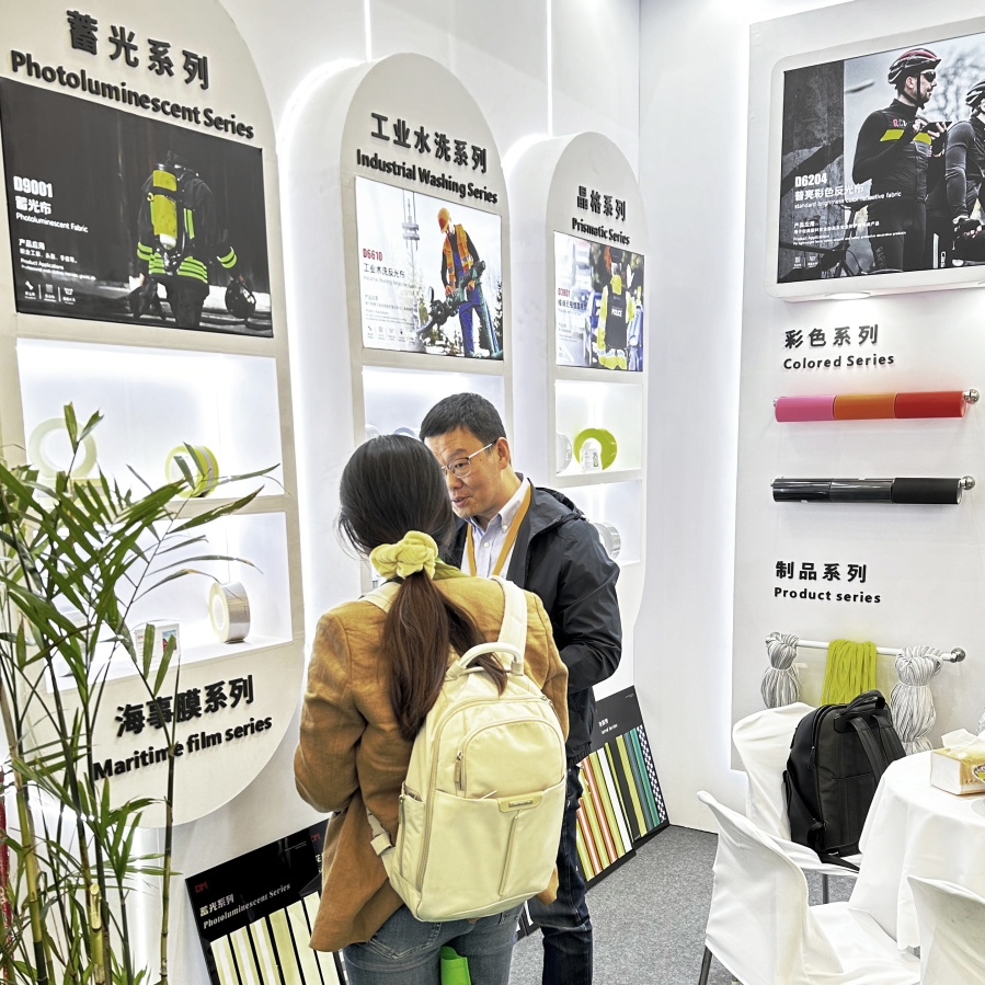 多款反光布、反光热贴、阻燃警示带、弹力反光布、反光服饰等样品,凭借稳定工艺、符合国内外相关标准、适配规模化生产,获得现场客商高度关注与认可。